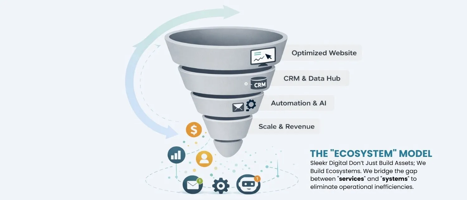 At Sleekr Digital, we design and implement performance-driven digital ecosystems. By aligning your website, conversion flows, CRM, automation, and growth optimization into one measurable system, we help businesses move faster, reduce friction, and make smarter decisions with real data — not assumptions.